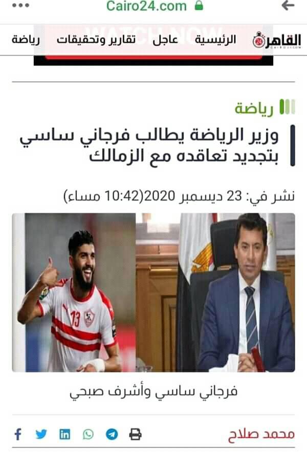 مجاملات: وزير الرياضة يحاول اقناع فرجاني بالتجديد تحرير هذه الصفحةهل اعجبك محتوى الصفحة؟تساعدنا ملاحظاتك على تحسين محتوانا. المقال السابقتفويت مباراة المصري 1992المقال التاليتفويت مباراة المصري 1992